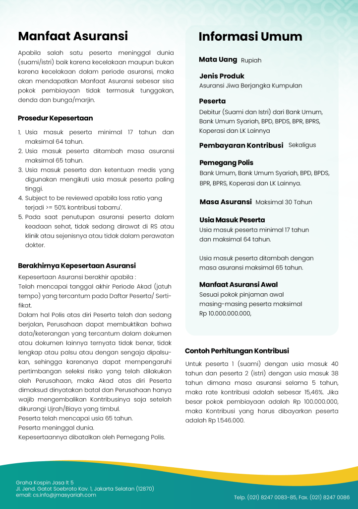 2. Usia masuk peserta ditambah masa asuransi maksimal 65 tahun.